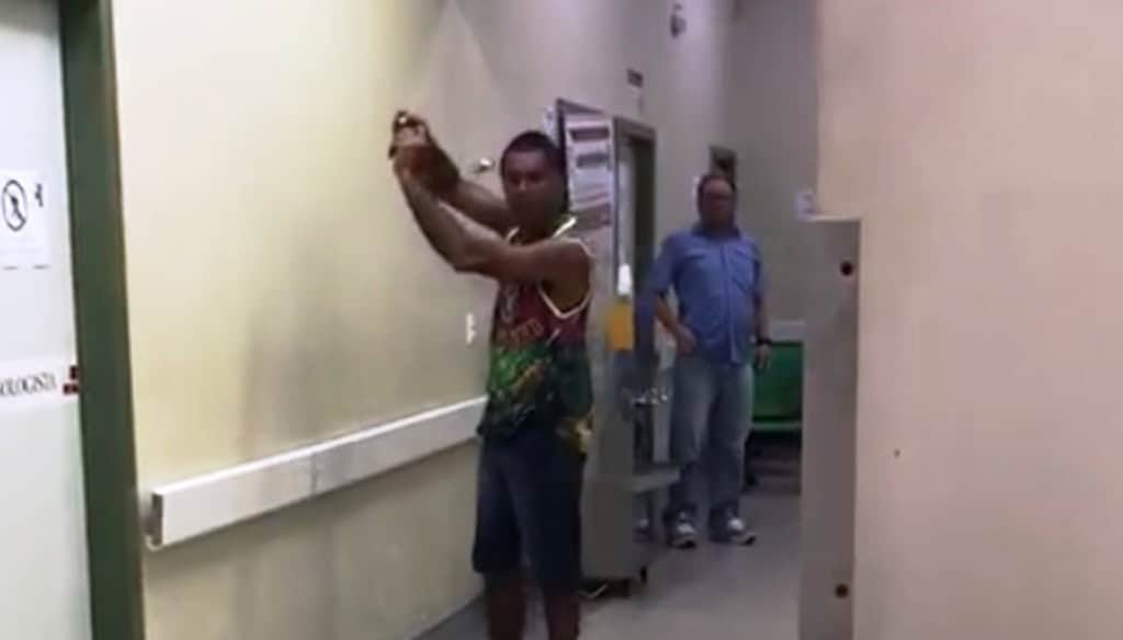 Um homem identificado pelo nome de Paulo Costa que aparentando está com braço quebrado foi flagrado por pacientes aos gritos no corredor do Hospital de Urgência e Emergência de Rio Branco (Huerb) na tarde deste domingo, 17.