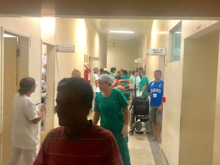 Um servidor do Pronto Socorro, que não quer se identificar, afirmou que estão chamando enfermeiros e técnicos que estavam de folga e também que há falta de material para atender a grande quantidade de pessoas feridas.