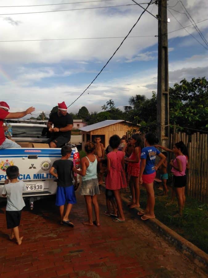 Em vez de presos, as viaturas transportaram os itens até as localidades mais carentes. Os alimentos e os brinquedos foram recebidos com alegria pelas famílias.
