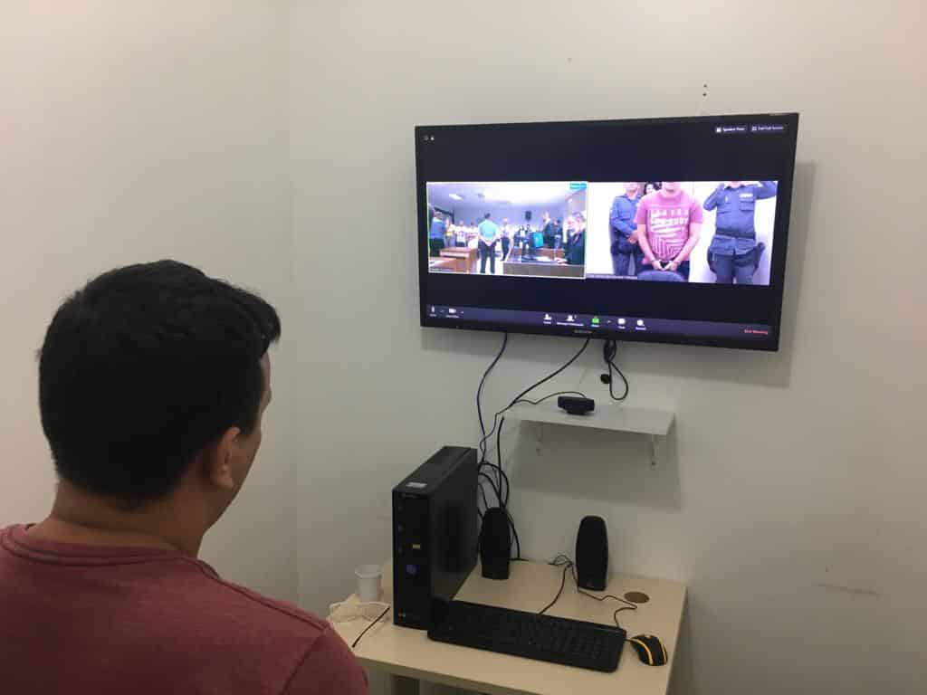 “São entre 12 e 13 audiências por videoconferência diariamente, de segunda a sexta-feira, utilizando seis salas próprias para a atividade e mobilizando três servidores e quatro policiais militares”, explicou.
