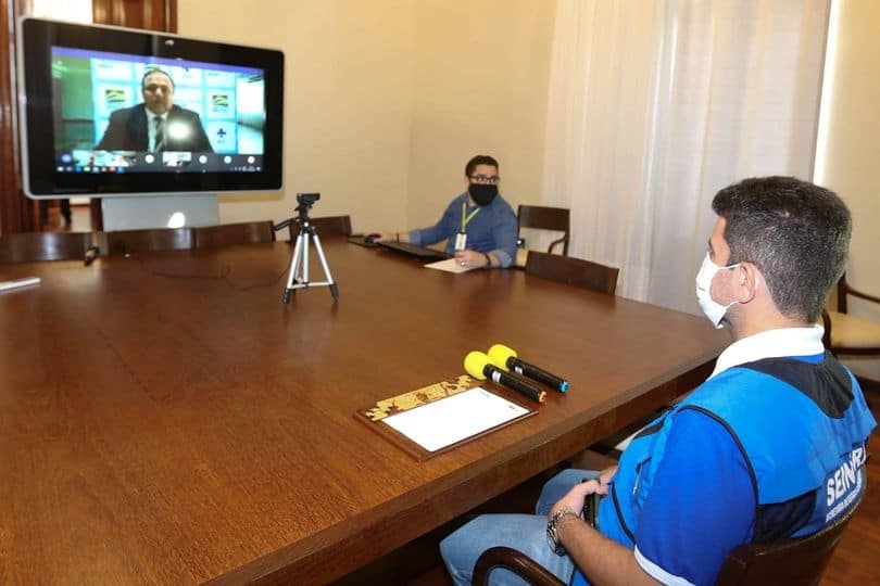 O governador Gladson Cameli participou na tarde desta terça-feira (20) de videoconferência com o ministro da Saúde, Eduardo Pazuello, e demais governadores brasileiros, para tratar sobre a vacina contra a Covid19.