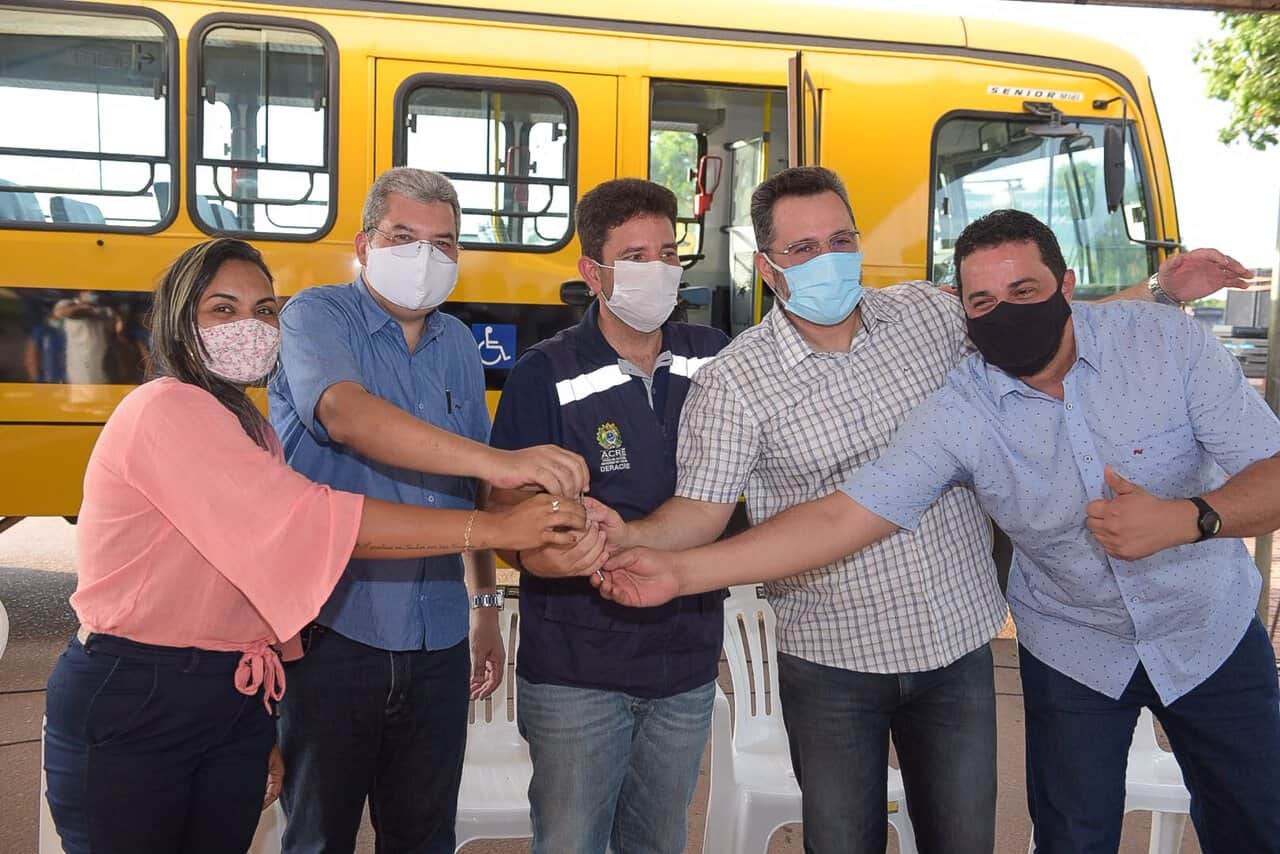 Gladson Cameli entrega mais 7 ônibus escolares no município de Porto Acre
