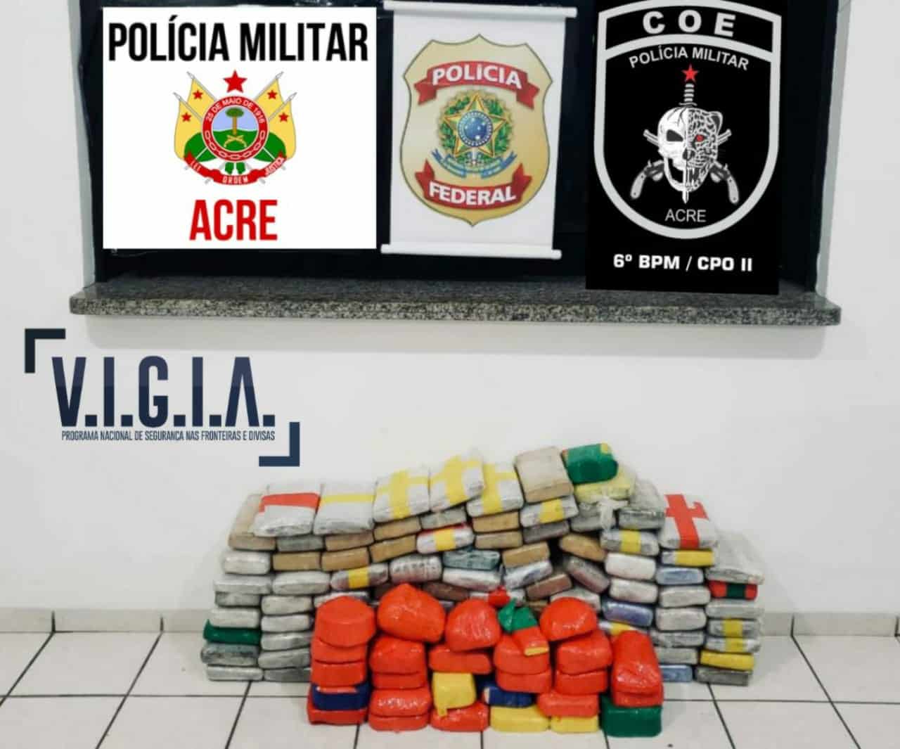 O material apreendido e os indivíduos foram conduzidos à Delegacia da Polícia Federal, no Município de Cruzeiro do Sul e serão levados para o Complexo Penitenciário Manoel Neri.