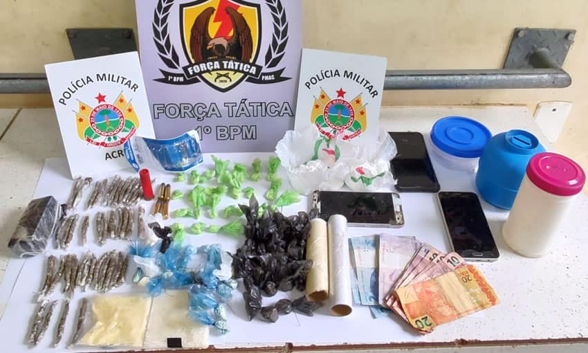 Uma ação dos Policiais Militares da Força Tática do 1° Batalhão resultou na prisão de dois traficantes e na apreensão de dinheiro e drogas na tarde desta terça-feira, 27. A prisão aconteceu na rua Plácido de Castro, no bairro Aeroporto Velho, região da Baixada da Sobral, em Rio Branco.