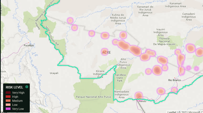 A PrevisIA indica que todos os municípios do Acre tem pontos de risco alto ou muito alto para o desmate, sendo que alguns municípios apresentam percentual alto para essa tendência. Assis Brasil, por exemplo, tem 51% de seu território nessa condição, e Manoel Urbano, 60% -os piores nessa previsão.