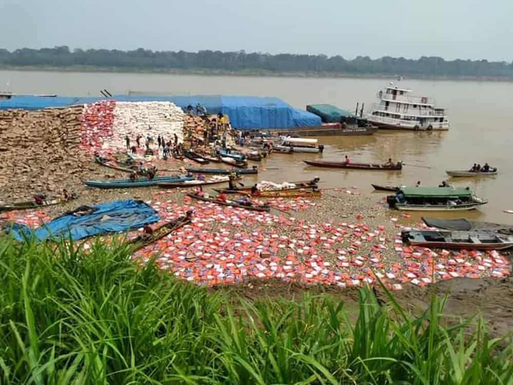 Uma carga de alimentos que estava numa balsa foi envolvida em um acidente no rio Madeira, nessa segunda-feira, 9, e liberada aos ribeirinhos pela tripulação da embarcação. Segundo um morador do distrito Calama, região onde a balsa virou, a tripulação decidiu doar os alimentos porque alguns produtos começaram a cair no rio.