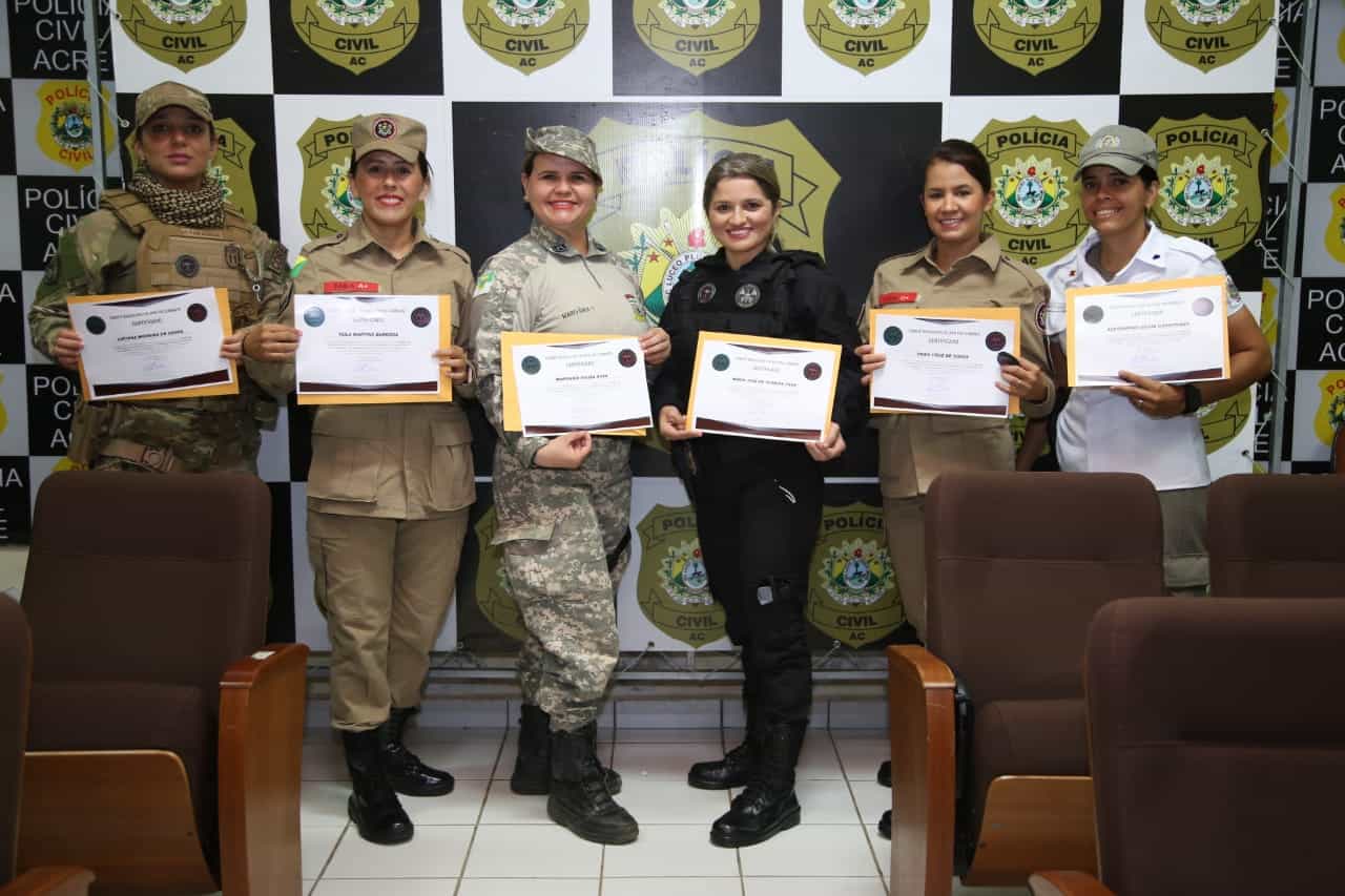 O curso, que no âmbito local teve a coordenação do policial penal Kiuly Daniel e do TC PMAC Assis Martins dos Santos, contemplou os profissionais pertencentes aos quadros da Polícia Militar, Bombeiro Militar, Polícia Civil, Polícia Penal, Polícia Rodoviária Federal, Polícia Federal, TJAC, Gabinete Militar e do Grupo Especial de Fronteira – GEFRON, além de Policiais dos Estados do AM, RO, CE, RN, PB, DF e MS.