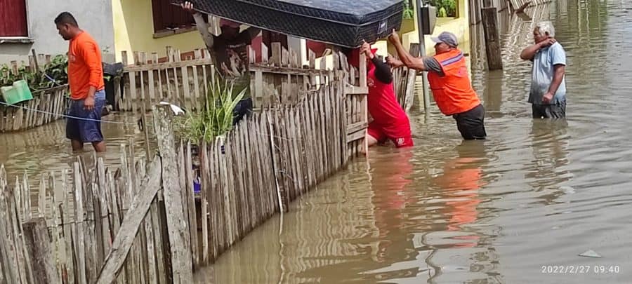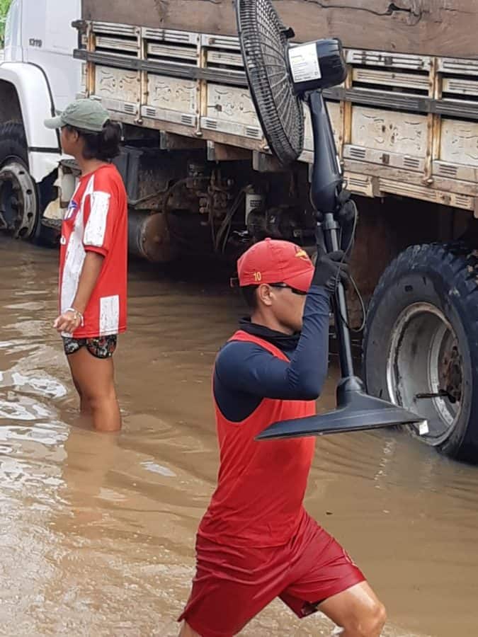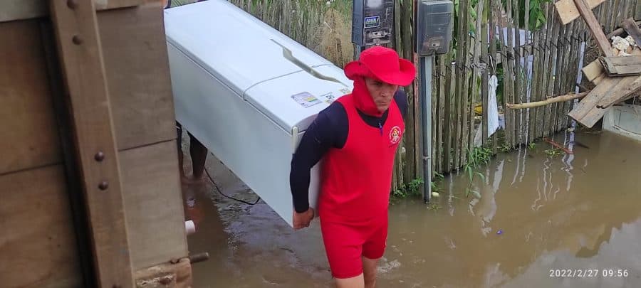 O trabalho do Corpo de Bombeiros e da Defesa Civil Municipal de Cruzeiro do Sul é intenso na retirada das famílias, dos móveis e demais objetos das pessoas.