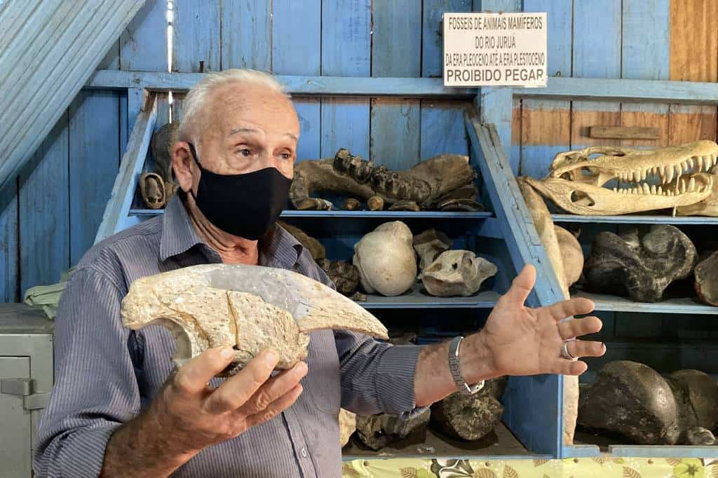 O paleontólogo amador estima ter 150 peças, todas encontradas na região, em praias do rio Juruá e afluentes. A maior delas, guardada em sua casa, no andar de cima da padaria, é a omoplata de 32 quilos de uma preguiça-gigante.