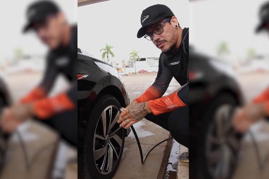 O próximo passo é calibrar os pneus de acordo com a indicação verificada, sempre observando o limite para não ultrapassar, colocando um valor médio da pressão que foi indicada.