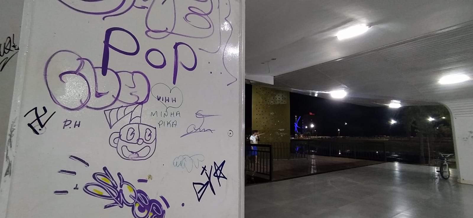Inaugurado em janeiro deste ano, o monumento possui pouca iluminação e está sendo utilizado como ponto de diversão, além de já ter tido parte da fiação furtada este ano.