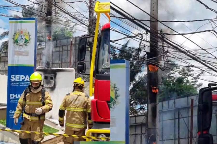 Ocorreu nesta quarta-feira, 26, nas imediações da Secretaria de Estado de Produção e Agronegócio (SEPA), localizada na Avenida Ceará, em Rio Branco, um princípio de incêndio em um poste de energia na frente do órgão.