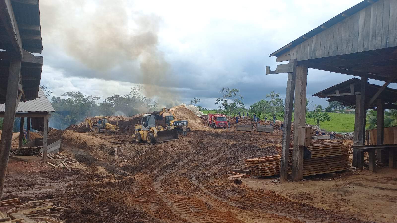 Desde a manhã desta segunda-feira 26 que homens do Corpo de Bombeiros trabalham no combate a um incêndio de grandes proporções que atingiu uma madeireira, localizada no quilômetro 7, na estrada Transacreana em Rio Branvo.