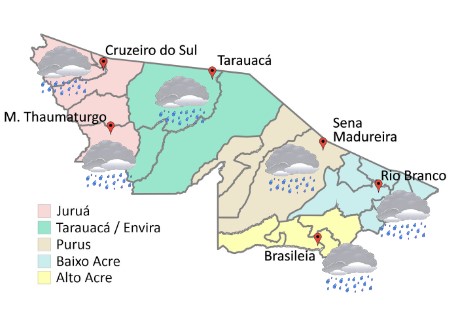 O boletim climático aponta chuvas intensas no Acre para o fim de semana, de acordo com do Centro Integrado de Geoprocessamento e Monitoramento Ambiental (Cigma), órgão ligado à Secretaria do Meio Ambiente e das Políticas Indígenas (Semapi). O governo do Acre montou uma força-tarefa para atender a população atingida pela cheia no estado.