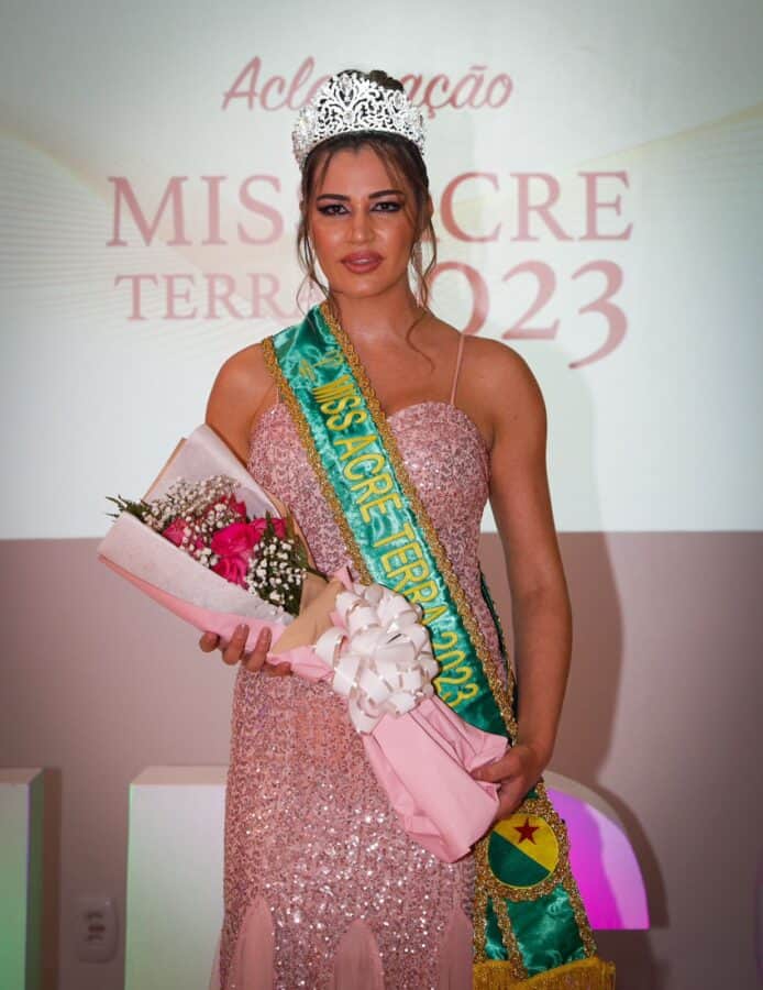 A Acreana com toque nordestino, modelo, bióloga e estudante de mestrado em Produção e Sanidade Animal, Samara Vanziler, foi aclamada na noite desta sexta-feira, 14, Miss Acre Terra 2023.