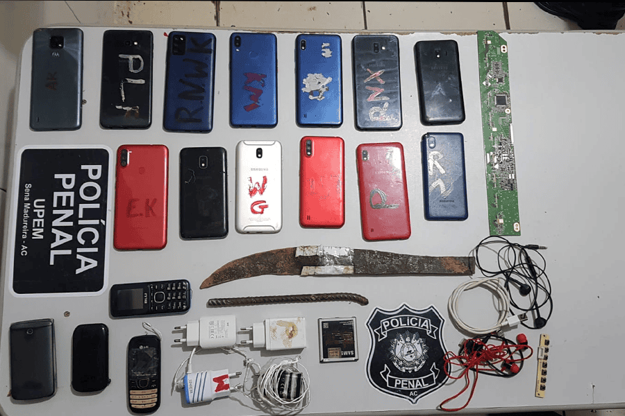 Na noite desta sexta-feira, 14, Policiais Penais encontraram 17 celulares e carregadores no Bloco 3 da Unidade Penitenciária Evaristo de Moraes , em Sena Madureira. No Bloco 3, ficam os presos da facção criminosa Comando Vermelho.