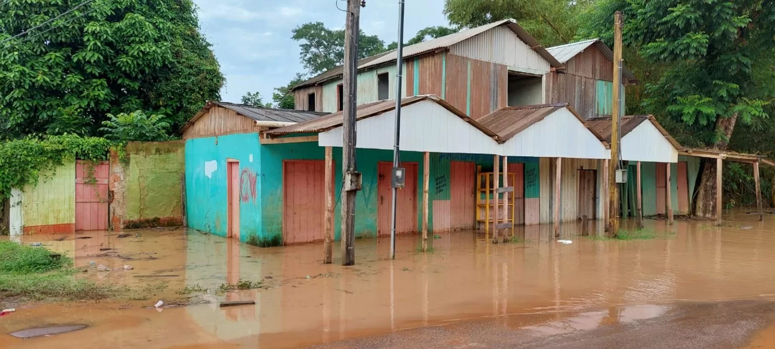 A rua Olegário França está localizada em uma das regiões mais baixas da cidade de Brasiléia e, consequentemente, é uma das primeiras a ser atingidas pelas cheias do manancial.