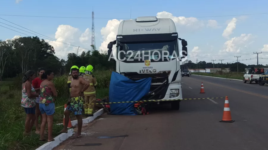 Uma colisão entre uma carreta e uma motocicleta tirou a vida de um motociclista ainda não identificado na tarde deste sábado, 8, próximo ao Ramal da Usina, na BR-364, na região do bairro Belo Jardim III, em Rio Branco.