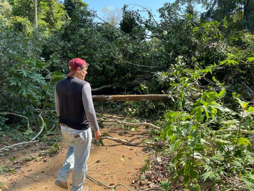 A estrada no meio da floresta, que liga Porto Walter a Cruzeiro do Sul, no Vale do Juruá, foi fechada com vários troncos de árvores nesta quarta-feira, 26. Muitos moradores de Porto Walter que estavam indo para Rodrigues Alves para assistir ao show do cantor Amado Batista, marcado para esta quinta-feira, 27, estão encontrando o caminho fechado.