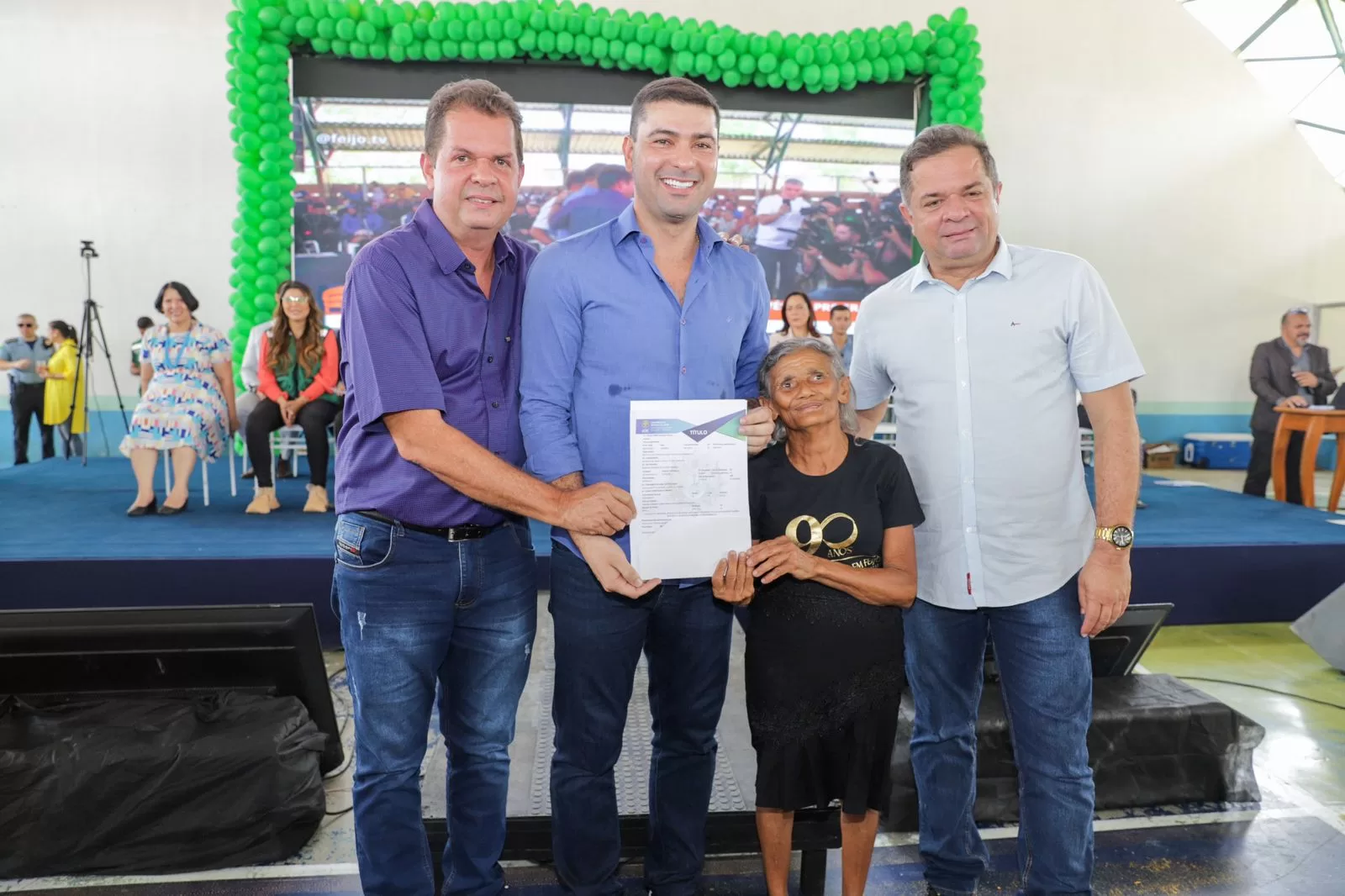 Ex seringueira, ela esperou por 14 anos a regularização fundiária do terreno onde mora na zona urbana de Feijó. A solenidade aconteceu na manhã desta segunda-feira (28), na Escola José Gurgel Rabelo, com a presença do governador Gladson Cameli, da vice Mailza Assis, da presidente do Tribunal de Justiça do Acre (TJAC), Regina Ferrari, secretários, vereadores e outras autoridades.