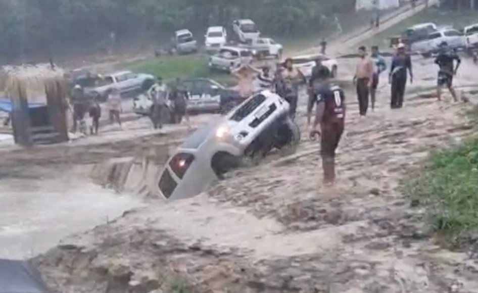 Vídeos que estão circulando nas redes sociais neste domingo, 15, mostram uma caminhonete Hilux caindo nas águas do Rio Abunã durante um temporal que atingiu a região do conhecido balneário rondoniense, onde se realiza anualmente um tradicional festival de praia frequentado por muitos acreanos.