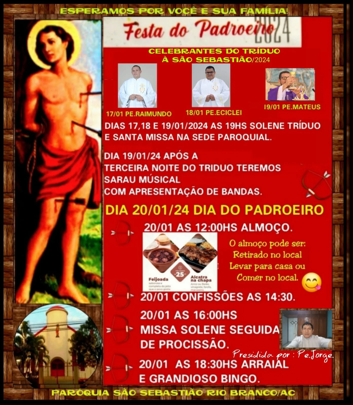 A Paróquia de São Sebastião, em Rio Branco, fica localizada na Travessa Santa Inês, 286, no Bairro do Aviário.