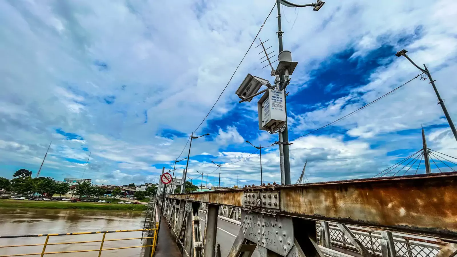 A Plataforma de Coleta de Dados da Agência Nacional de Águas da ponte Juscelino Kubitschek, único meio tecnológico que auxilia os órgãos de defesa na medição do rio Acre em tempo real na capital do Acre, foi roubado. Com isso, o único método de leitura do rio Acre disponível é a régua.