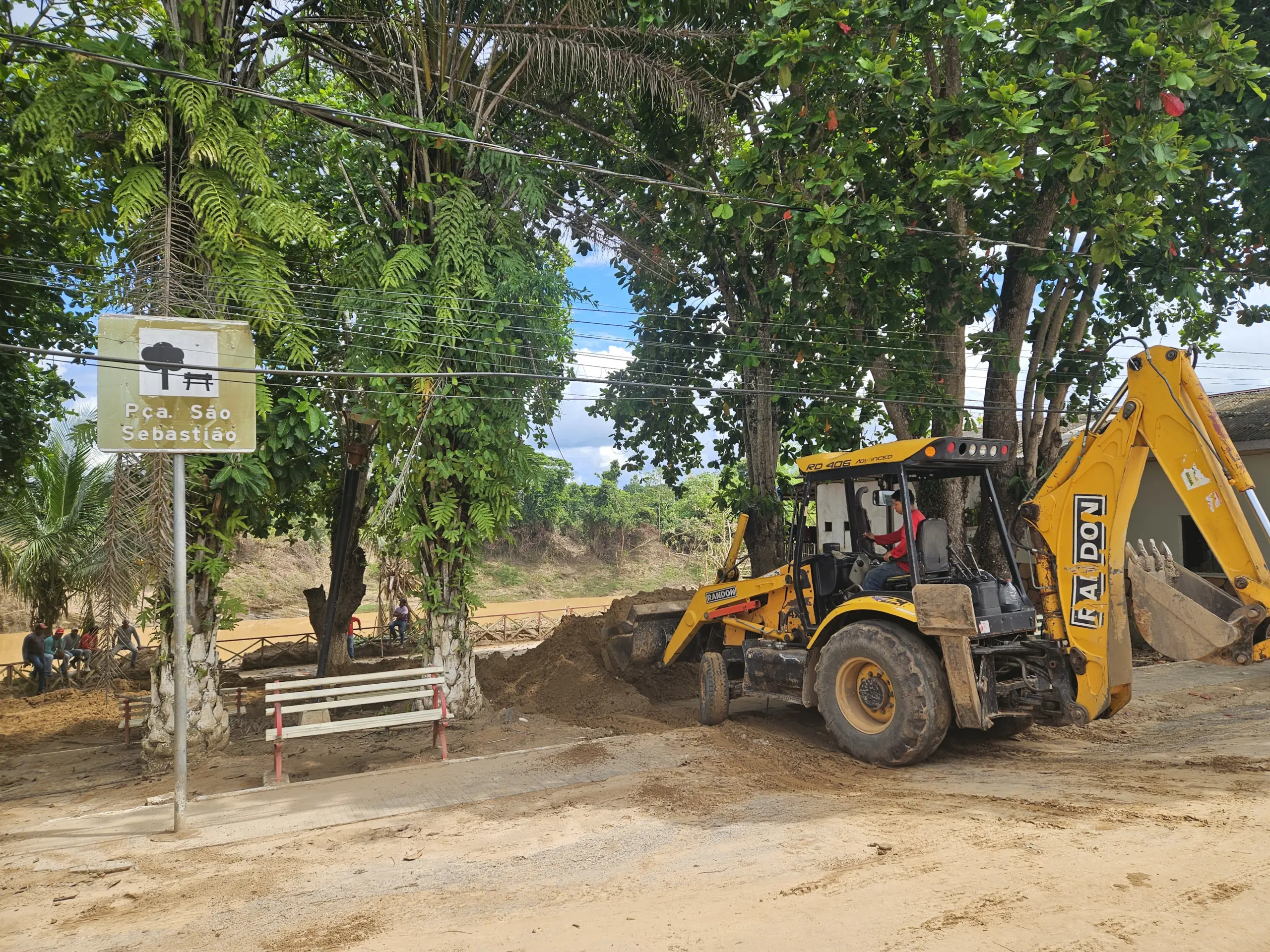 Um dos principais logradouros públicos de Xapuri, de onde é possível vislumbrar o encontro do rio que dá nome à cidade com o Rio Acre, a Praça São Sebastião ficou completamente soterrada pela areia após a vazante da segunda maior enchente ocorrida no município.
