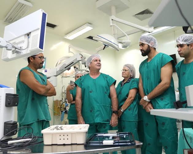 Em meio às críticas aos atendimentos e demora nos serviços da Saúde no Acre, nesta quarta-feira, 25, o governador Sebastião Viana, ao lado do secretário de Saúde, Gemil de Abreu Júnior, e do diretor-geral do Hospital de Urgência e Emergência, Fabrício Lemos, visitou as instalações do mais estruturado centro de neurocirurgia do país. O espaço foi implantado no Hospital das Clínicas, em Rio Branco.