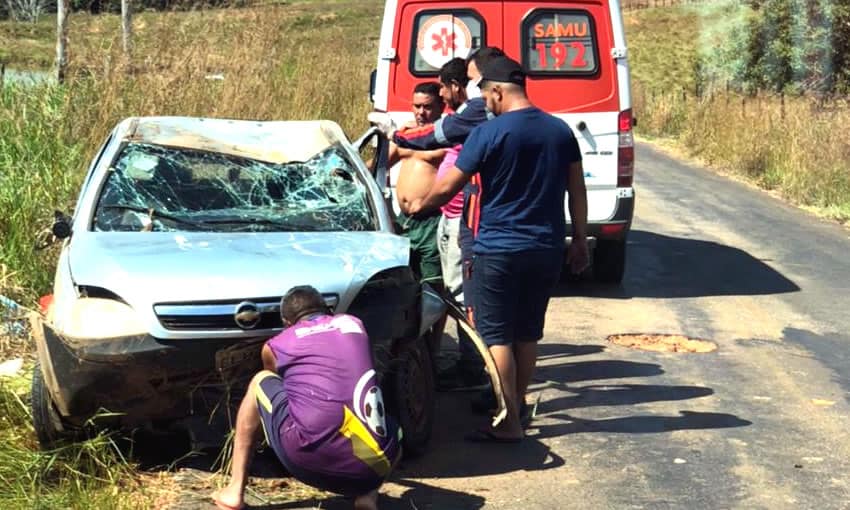 Mulher é arremessada no asfalto, desmaia e fica em estado grave após colisão com carro