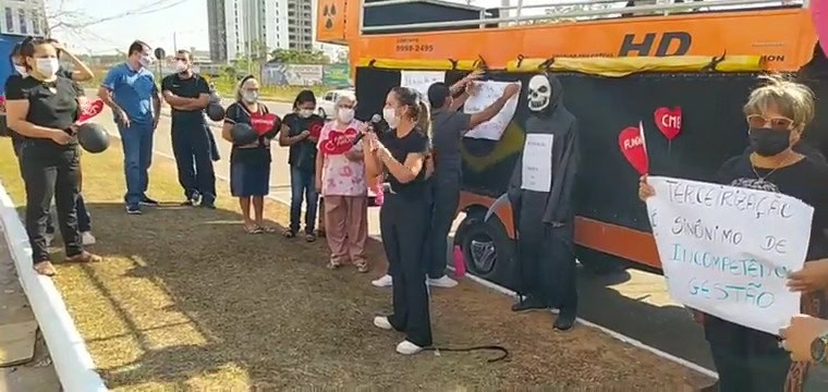 Servidores da Saúde realizaram na manhã desta terça-feira, 03, um protesto contra a terceirização da Fundação Hospital Estadual do Acre (Fundhacre), em Rio Branco.