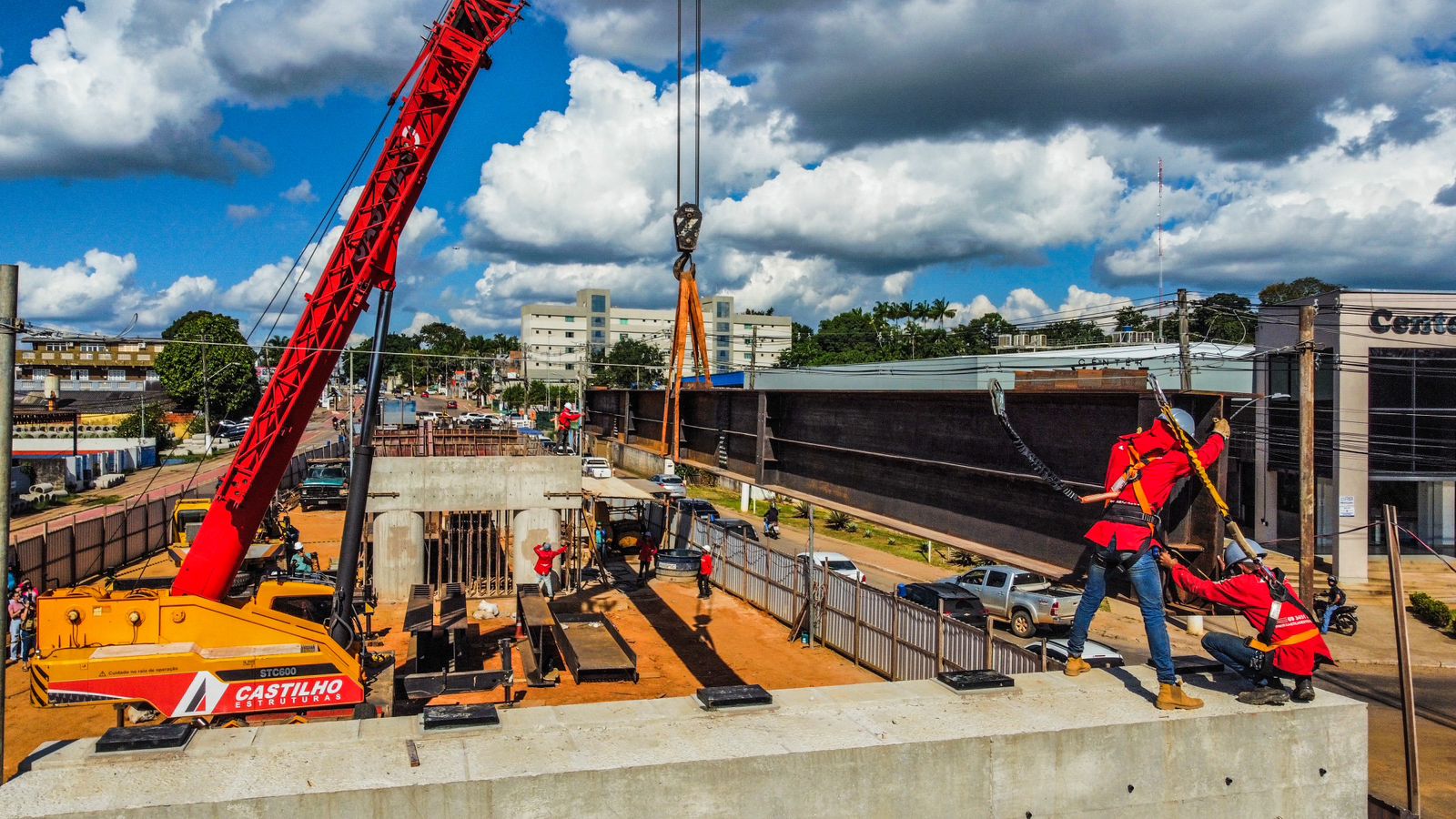 Homens que trabalham na construção do elevado da Estrada Dias Martins, em Rio Branco, puseram no lugar, na tarde desta quinta-feira (23) a primeira de 15 vigas de metal que assentadas sobre os pilares da construção. O início da manobra em uma máquina pesada que fez a operação foi comandada pelo prefeito Tião Bocalom (veja … Leia mais